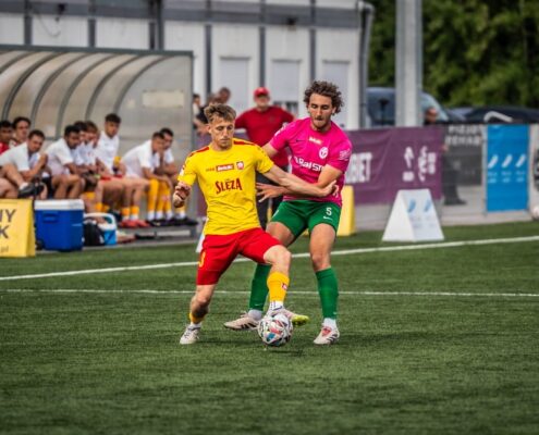 Piłkarskie umiejętności były w tym meczu po stronie wrocławian, ale pierwsze próby strzeleckie były…